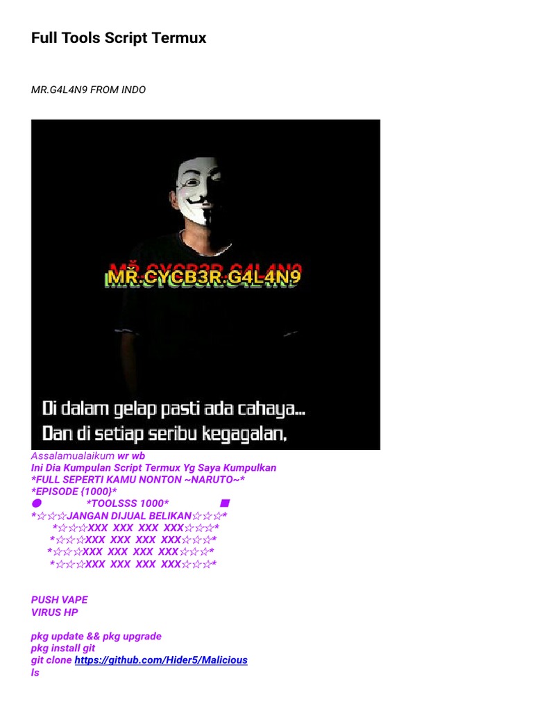 Selaku aplikasi yang bawa fungsionalitas linux ke dalam android yang membolehkan penggunanya buat melaksanakan script buat hack akun facebook.
